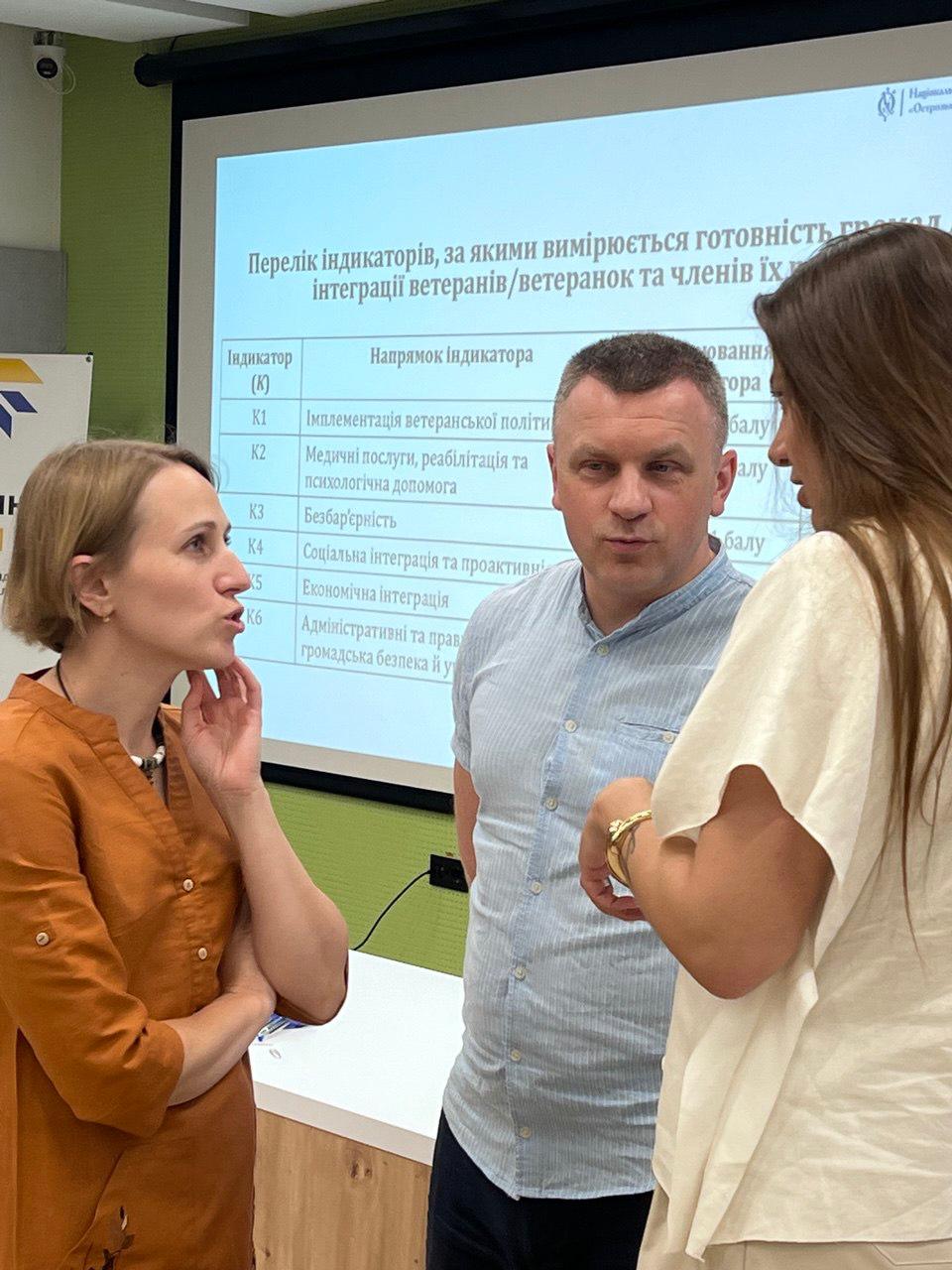 Під час заходу «Ефективне представництво та лідерство у ветеранській політиці» Юлія Шулик та Віталій Лебедюк провели тренінги із застосування Методології оцінювання готовності громад до повернення ветеранів та ветеранок. Під час тренінгів учасники могли спробувати оцінити готовність своїх громад у сфері ветеранської політики. Також учасники розглянули різні інструменти участі ветеранів у житті громади та шляхи впливу на ветеранську політику в їхніх громадах.