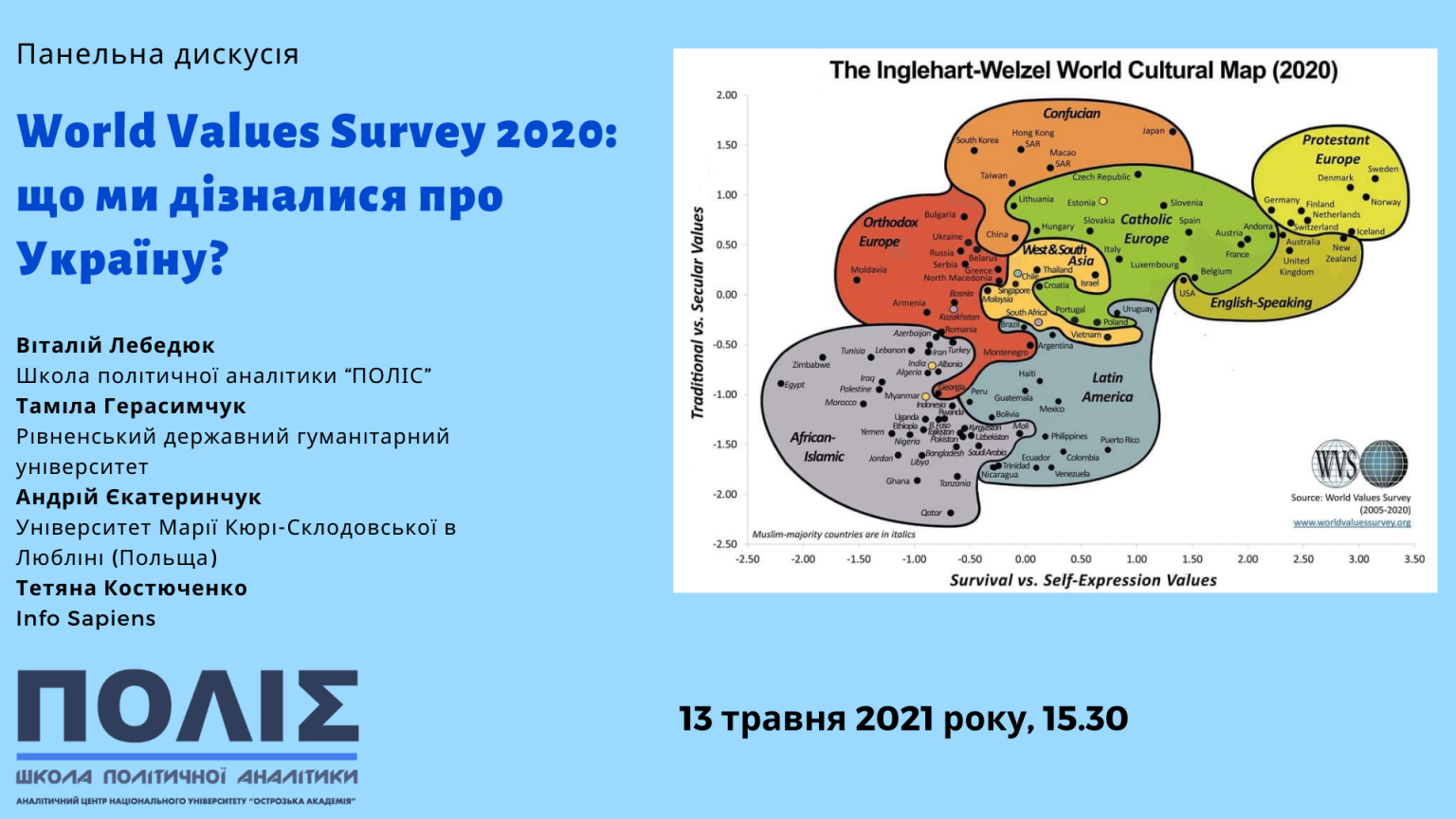 Аналітичний центр “Школа політичної аналітик “ПОЛІС” Національного університету “Острозька академія” запрошує долучитись до панельної дискусії «World Values Survey 2020: що ми дізналися про Україну?»