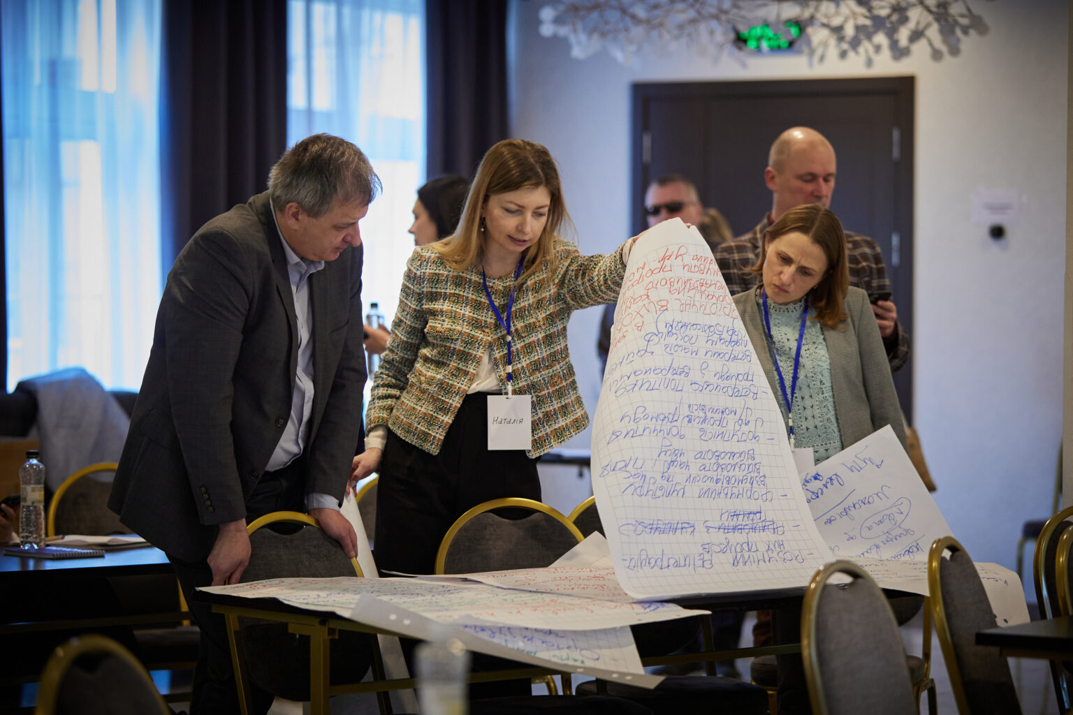 27-29 березня 2024 року у м. Рівне проходила стратегічна сесія щодо напрацювання спільної візії щодо методологічної основи, дизайну інструменту(ів) (само)оцінки, а також системи індикаторів, які б забезпечили комплексну (само)оцінку готовності громад до реінтеграції ветеранів та ветеранок до цивільного життя. На заході зібралися ключові експерти, представники державної влади, місцевого самоврядування, громадського сектору та освітяни.